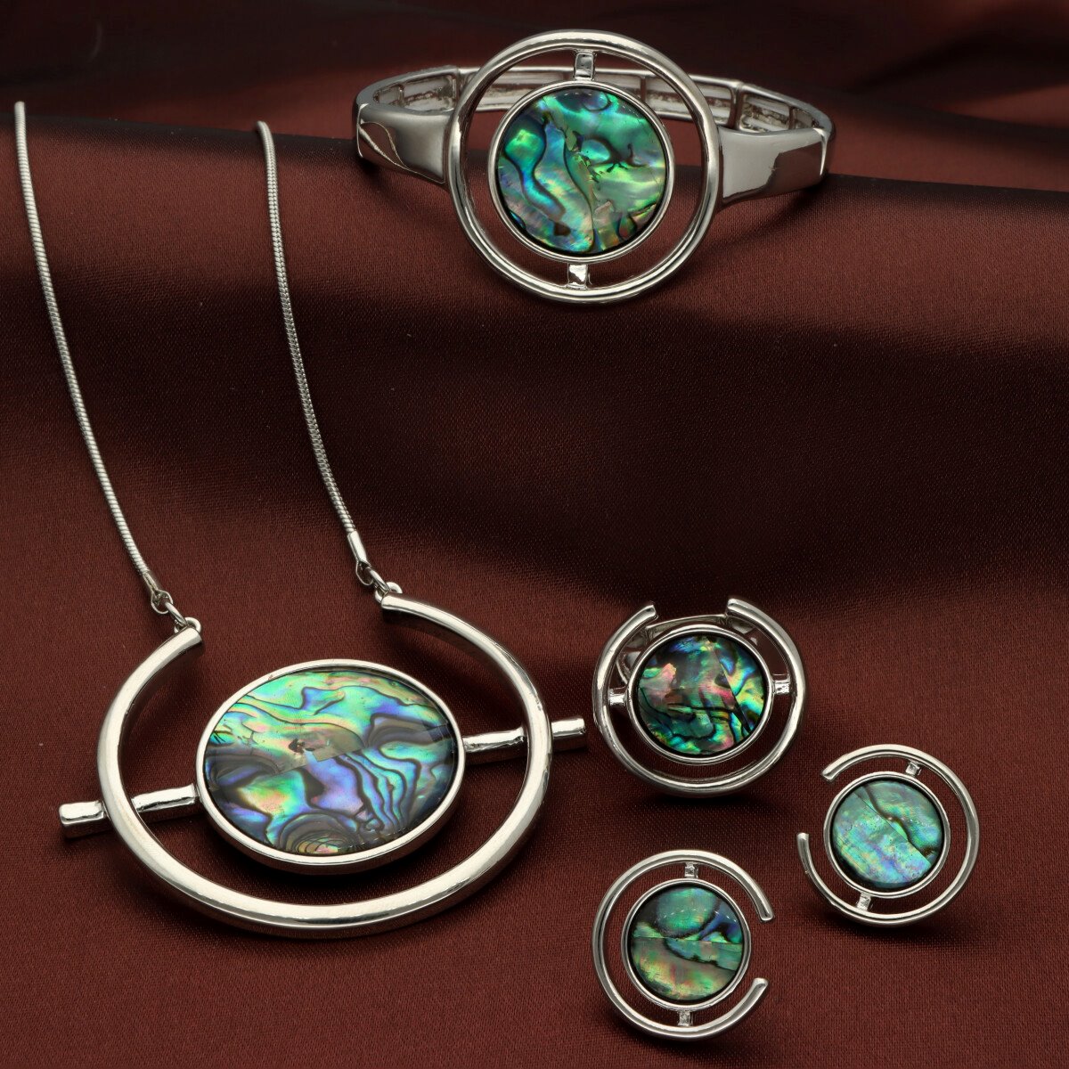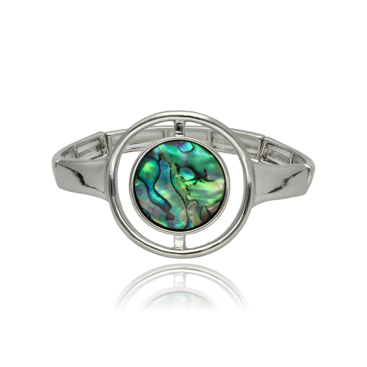 Stylowa bransoletka na elastycznej gumce, wykonana z metalowych, antyalergicznych elementów i muszli naturalnej Abalone.