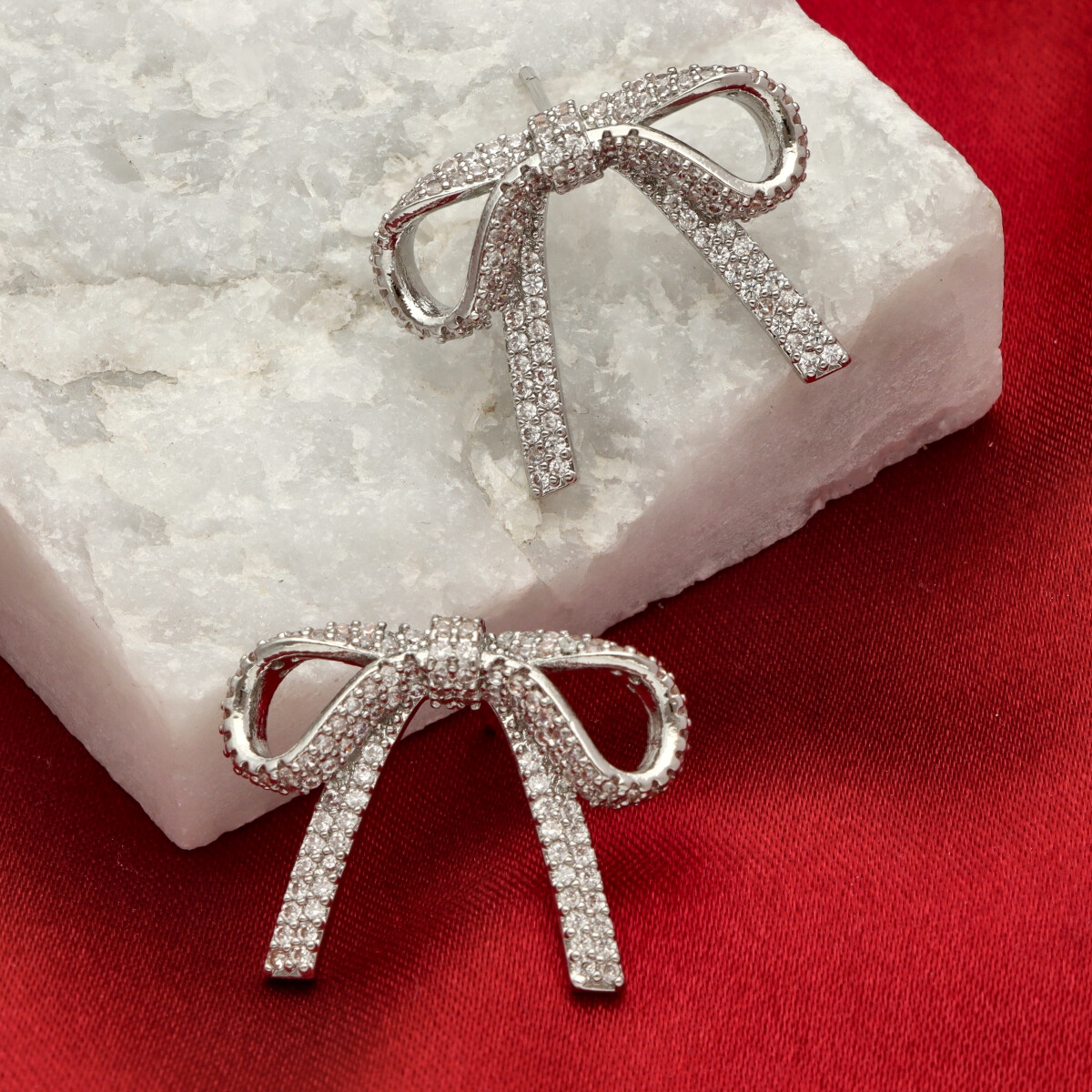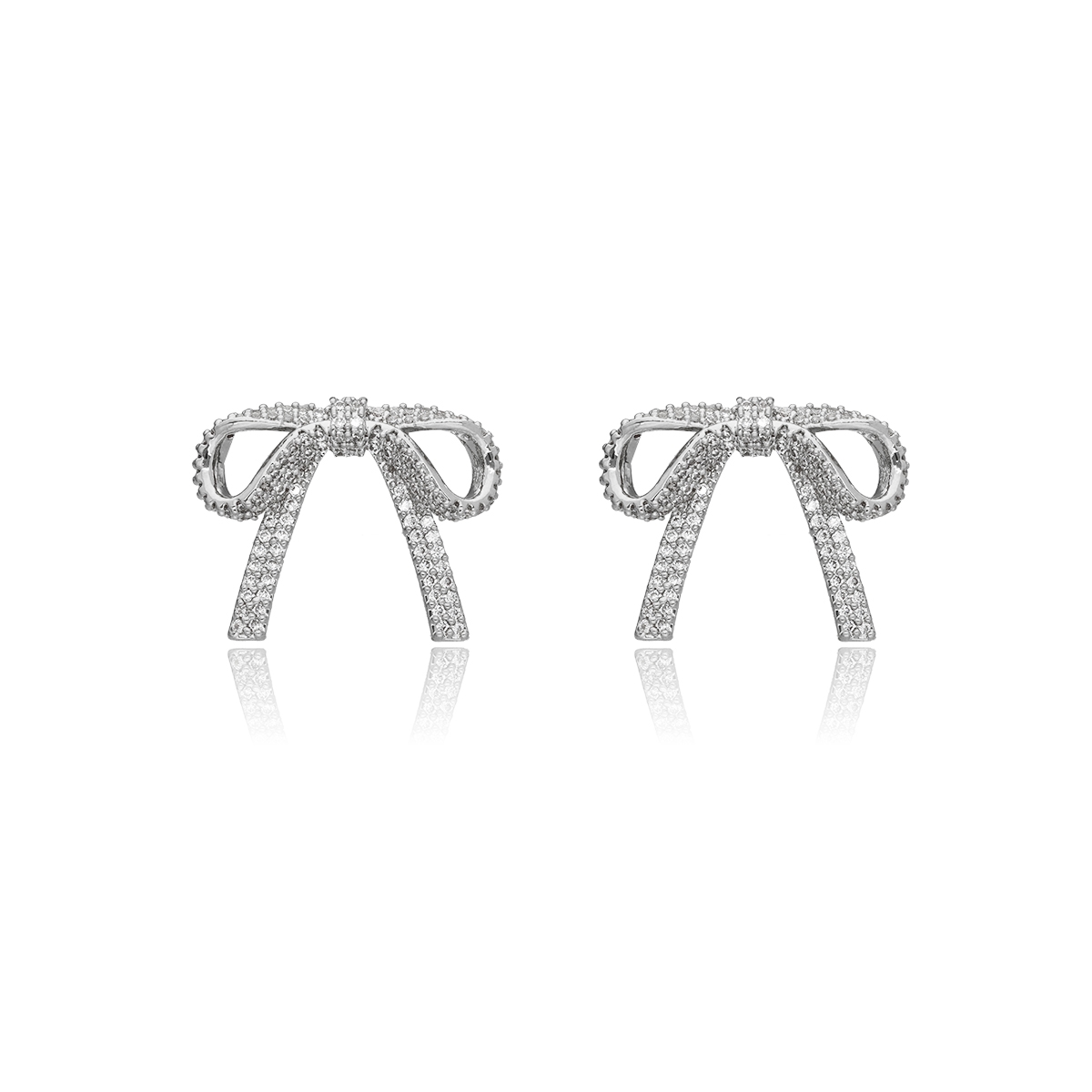 Kolczyki YVON srebrne kokardki z cyrkoniami