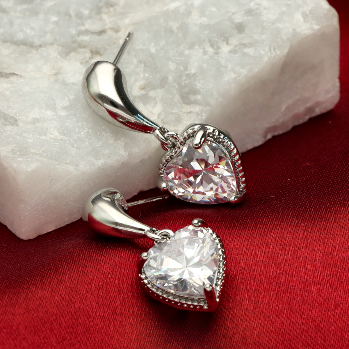 Kolczyki YVON srebrne serca cyrkonie
