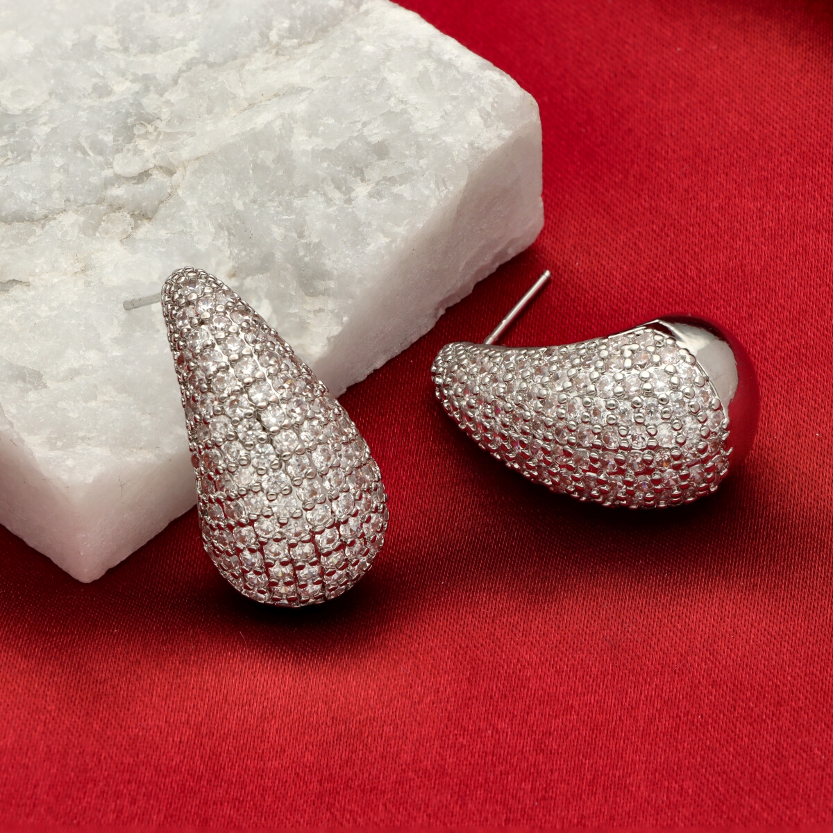 Wyjątkowe kolczyki wykonane z hipoalergicznego metalu na bazie mosiądzu, ozdobione wysokiej jakości cyrkoniami, które pięknie odbijają światło i nadają biżuterii eleganckiego blasku.