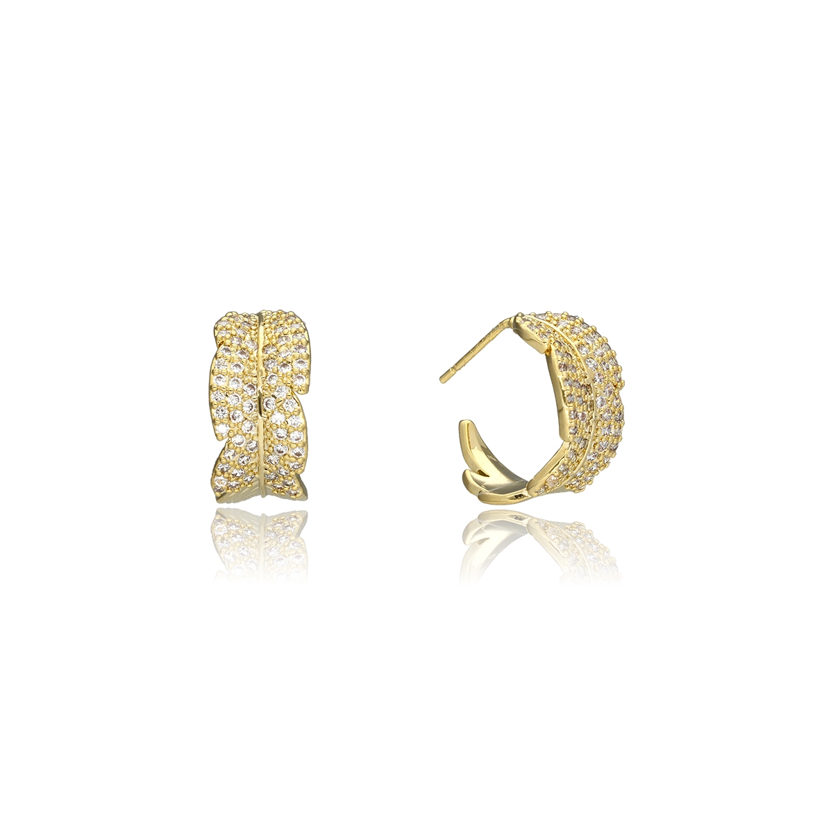 Wyjątkowe kolczyki wykonane z hipoalergicznego metalu na bazie mosiądzu, ozdobione wysokiej jakości cyrkoniami, które pięknie odbijają światło i nadają biżuterii eleganckiego blasku.
