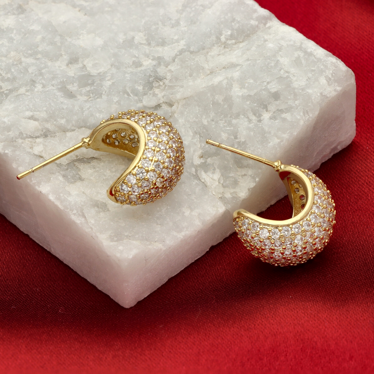 Wyjątkowe kolczyki wykonane z hipoalergicznego metalu na bazie mosiądzu, ozdobione wysokiej jakości cyrkoniami, które pięknie odbijają światło i nadają biżuterii eleganckiego blasku.