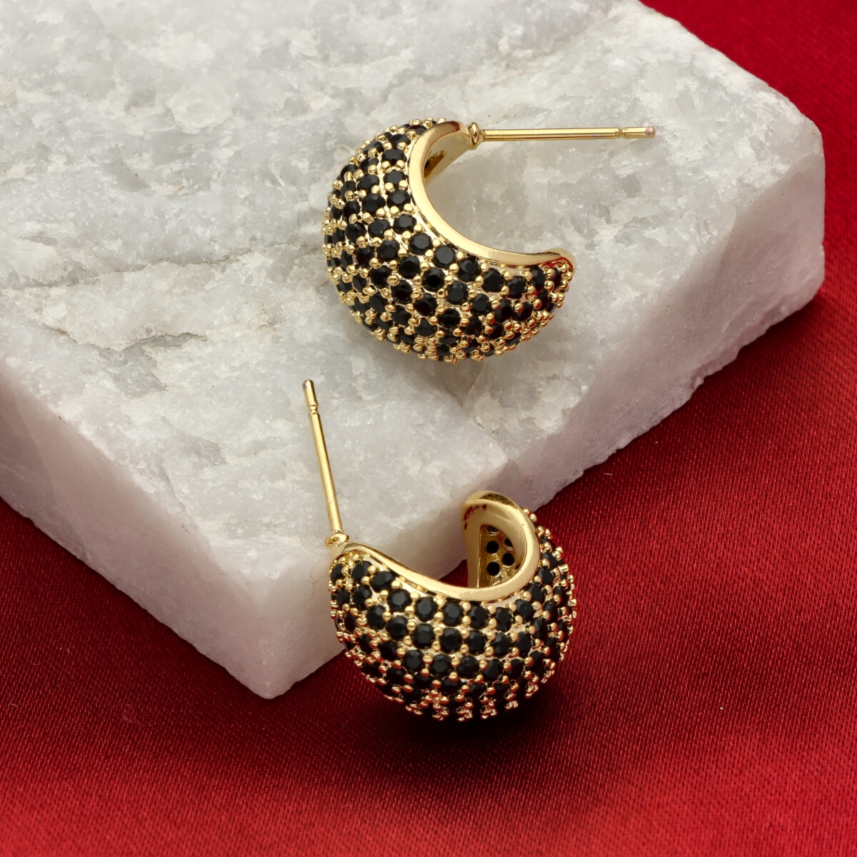 Wyjątkowe kolczyki wykonane z hipoalergicznego metalu na bazie mosiądzu, ozdobione wysokiej jakości cyrkoniami, które pięknie odbijają światło i nadają biżuterii eleganckiego blasku.