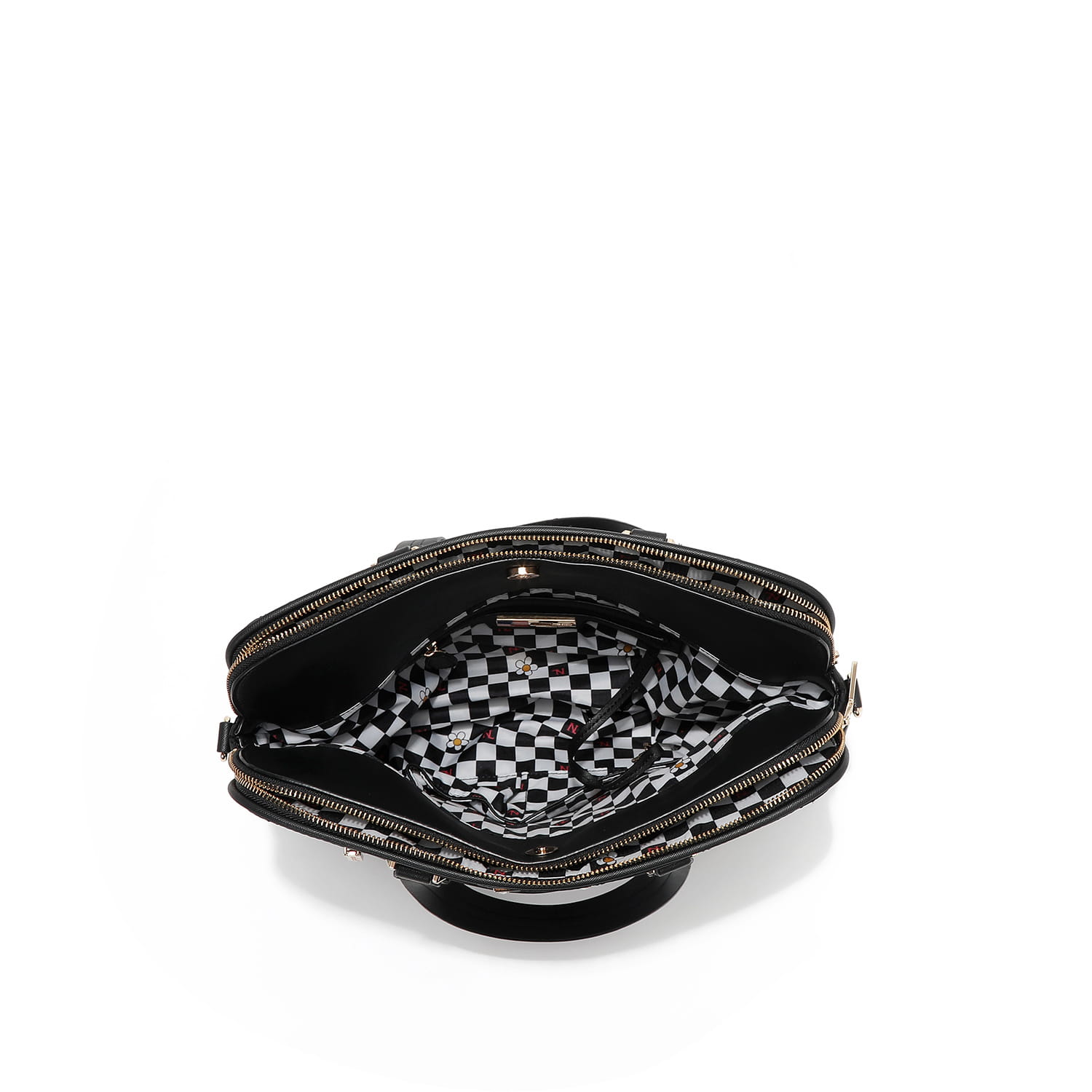- trze kieszenie z przodu torebki: dwie otwarte, jedna zamykana na zamek